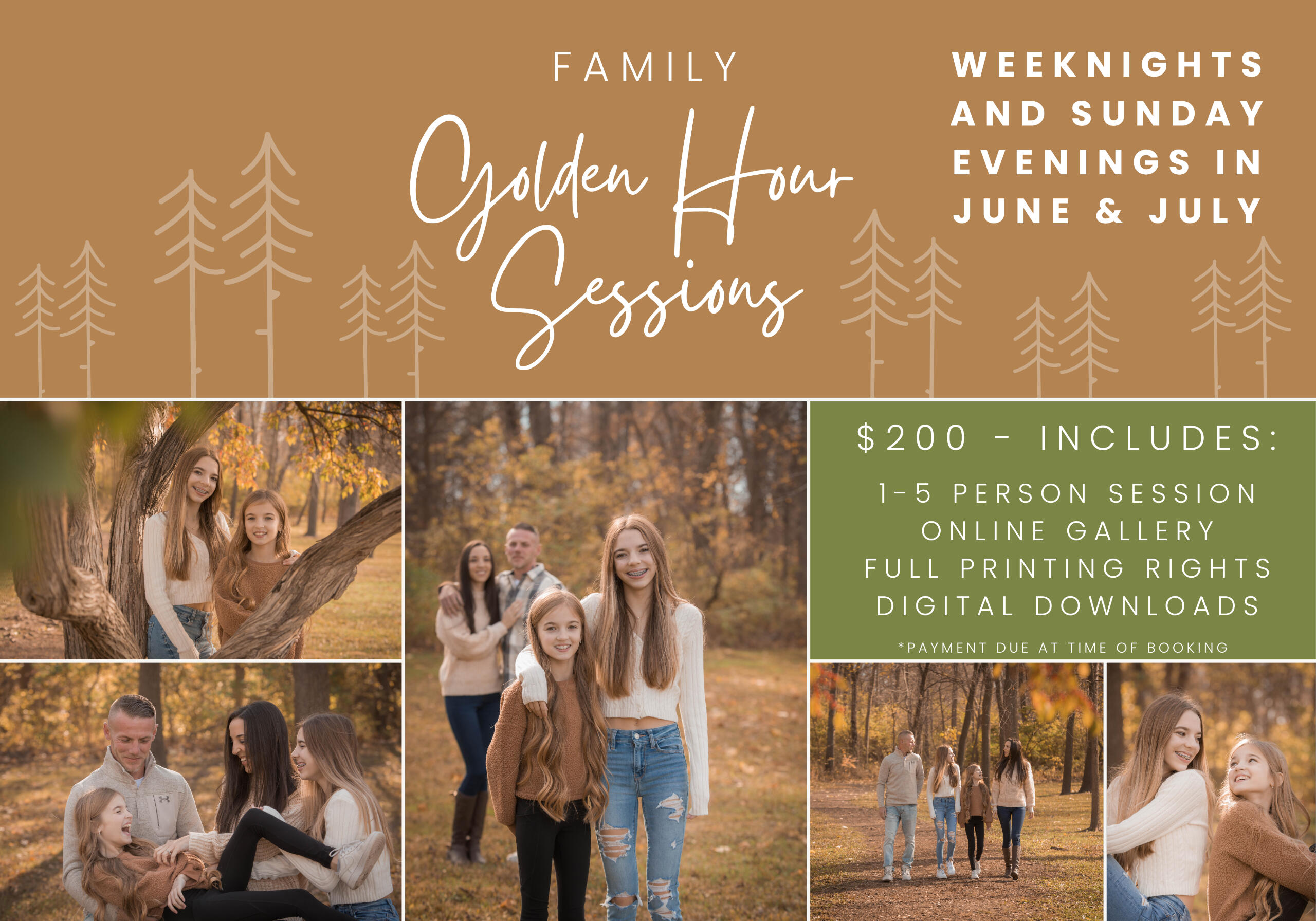 1+ hours of shooting at indoor* or outdoor location for a family of 5 or less